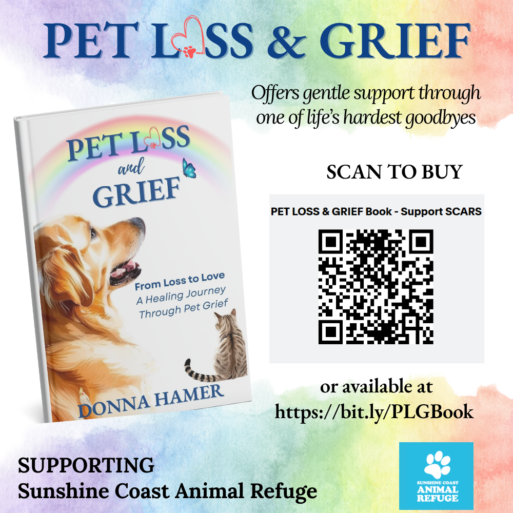 PET LOSS & GRIEF book, written by Donna Hamer a local Sunshine Coast Resident and SCARS pawrent. Pet Loss & Grief: From Loss to Love is a warm and supportive guide for those facing the heartache of pet loss. (This is only available in Australia). A $10 donation will be made to SCARS from your purchase through the below button.